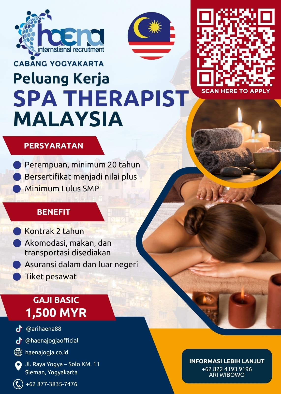 PT. Haena Duta Cemerlang is seeking dedicated and enthusiastic Spa Therapists to join our client's team in Malaysia. We are looking for committed individuals to fill various hospitality roles, with a primary focus on Spa Therapists.